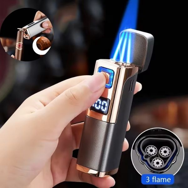 بريكي غاز بـ3 شعلات زرقاء قوية، مثالي لإشعال السيجار بسرعة وباحترافية