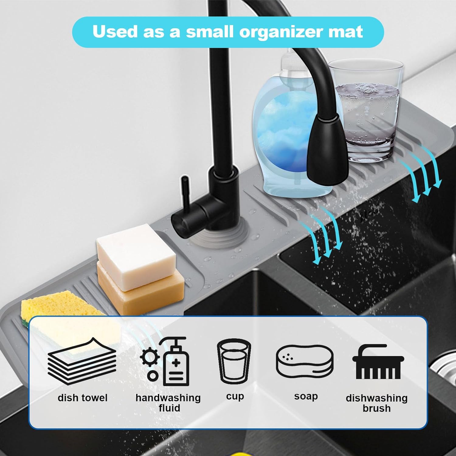 قم بتبسيط روتين تنظيف مطبخك واحتفظ بمنطقة حوض المطبخ الخاصة بك جافة ومنظمة باستخدام حاجب رذاذ صنبور حوض المطبخ وحصيرة التصريف