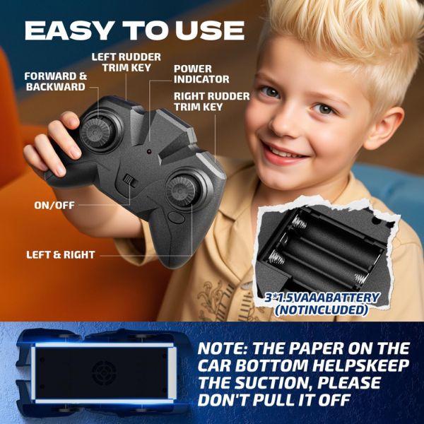 اكتشف لعبة فريدة من نوعها! سيارة التحكم عن بعد هذه لا تقتصر على الأرض فقط، بل يمكنها التسلق على الجدران والسقف بكل سهولة. تصميم مبتكر يجعل تجربة اللعب مثيرة وغير تقليدية