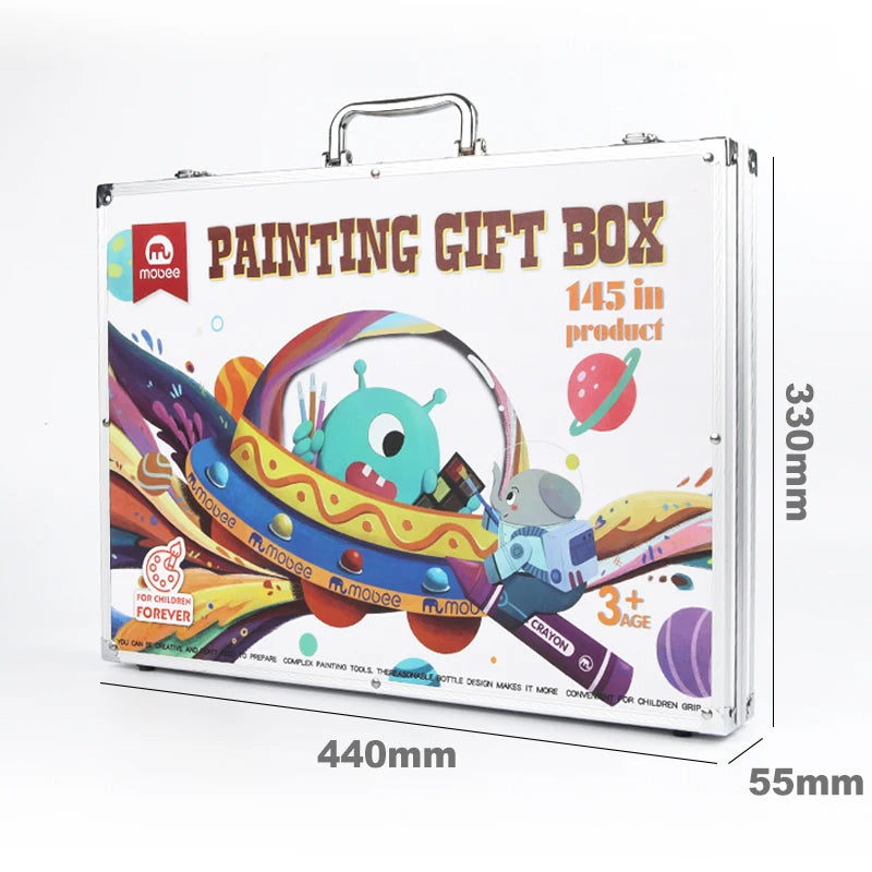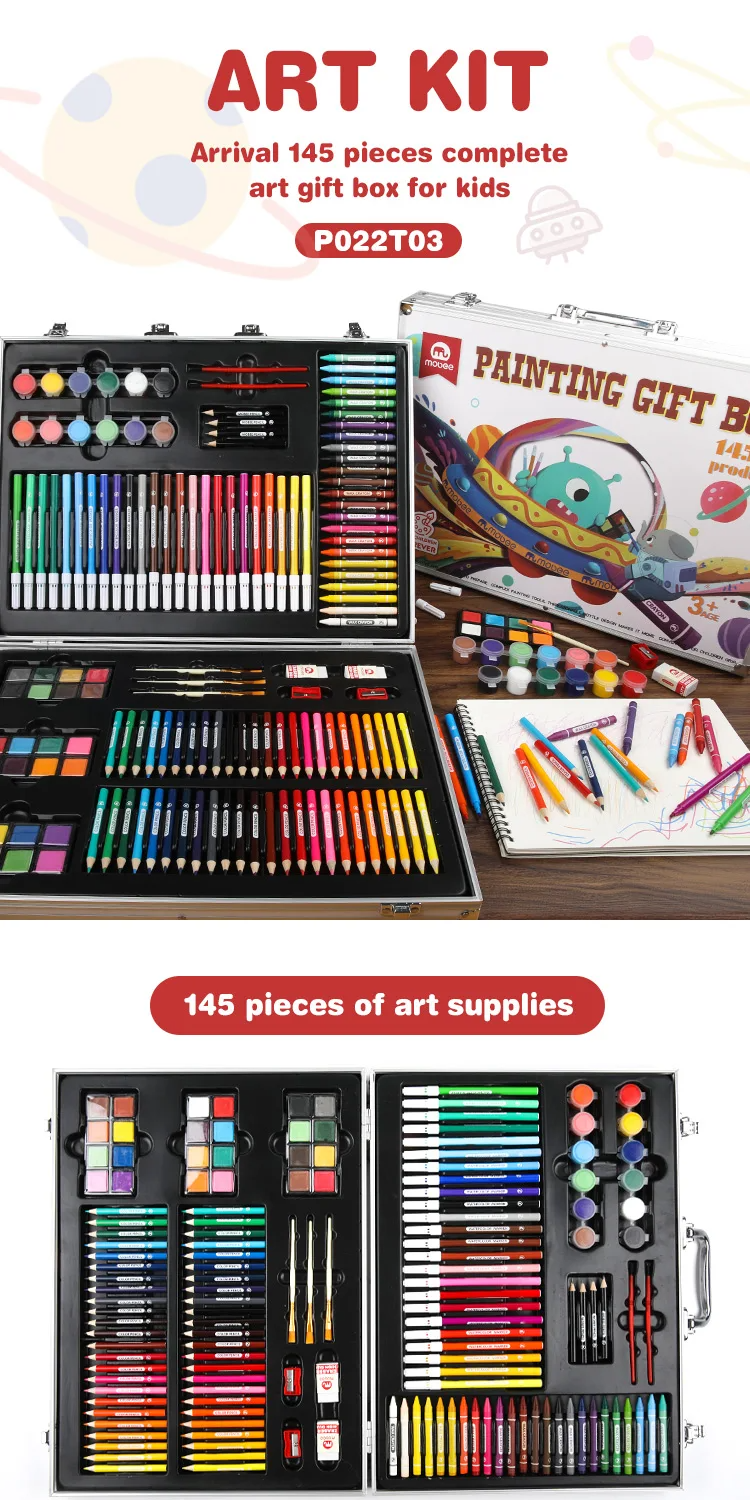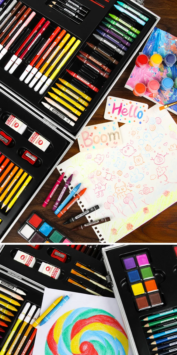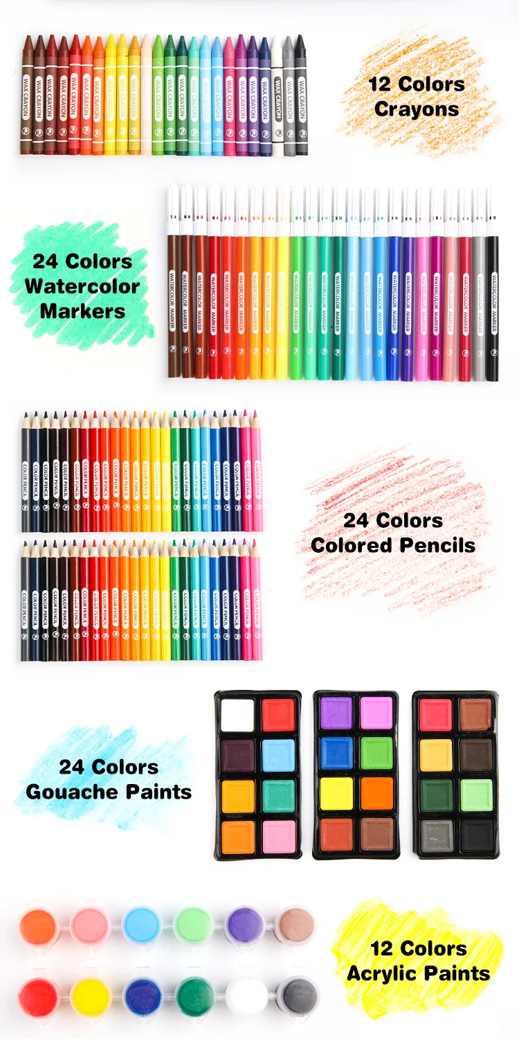 اجعل فنون طفلك تتألق مع مجموعة فنية تضم 145 قطعة مثالية للرسم والتلوين. 🎨